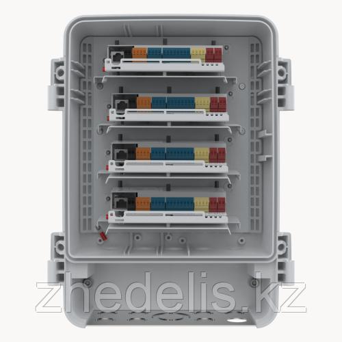 Этот готовый к использованию комплект «все в одном» может управлять четырьмя дверями. В его состав входят четыре устройства AXIS A1210-B и монтажная пластина AXIS TA1601, заключенные в шкаф наблюдения AXIS TQ1808-VE, прочный, вандалозащищенный шкаф с классом защиты IK10, IP66 и NEMA 4x. Он обеспечивает быструю и простую установку. Плюс при необходимости можно вынуть и смонтировать каждый дверной контроллер отдельно.